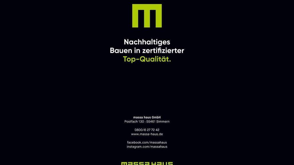 Seit 1978 begleitet massa haus Menschen auf ihrem Weg ins eigene Zuhause. Als Marktführer im Ausbauhaus-Segment verbindet das Unternehmen aus Simmern jahrzehntelange Erfahrung mit einem klaren Anspruch: nachhaltig, energieeffizient und zukunftsorientiert bauen. Herzstück jedes Hauses ist der natürliche Baustoff Holz. Er sorgt für ein angenehmes Raumklima, speichert CO? und schafft eine solide, wertbeständige Basis für Generationen. In modernen Fertigungsanlagen entstehen präzise vorgefertigte Wand-, Dach- und Deckenelemente in Holzständerbauweise - effizient produziert, sorgfältig geprüft und bereit für ein langlebiges Eigenheim. So verbindet massa haus ökologische Verantwortung mit wirtschaftlicher Vernunft. Durch individuell wählbare Eigenleistungen bleibt der Traum vom Haus mit Garten nicht nur nachhaltig gedacht, sondern auch realistisch finanzierbar.