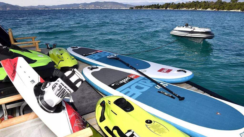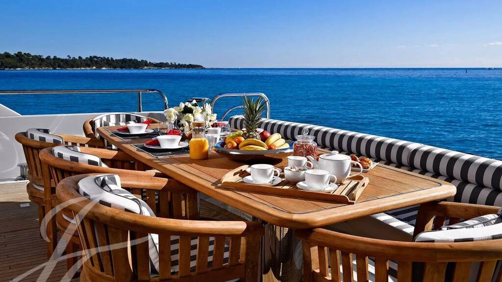 Un intérieur élégant complété par un mobilier sophistiqué et un extérieur spacieux, y compris un bar sur le Flybridge et deux salles à manger extérieures, font d'elle le yacht parfait pour se divertir. Emoji vient également avec une large gamme d'activités nautiques. Pouvant accueillir jusqu'à dix invités dans cinq cabines; dont une suite parentale, deux cabines doubles et deux cabines doubles (convertibles), Emoji compte un équipage de six personnes.