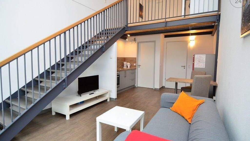Wohnen auf Zeit geht ganz leicht! Sie wünschen sich eine voll möblierte, offen gestaltete Wohnung in zentraler, aber dennoch ruhiger Lage? Dann sind Sie hier richtig! Diese 2017 komplett kernsanierte Galeriewohnung mit bodentiefen Fenstern liegt ca. 10 Gehminuten vom Rathausplatz Augsburgs entfernt. Im Erdgeschoss befindet sich das Duschbad, ein begehbarer Kleiderschrank, eine voll ausgestattete Küche und der Wohnbereich. Über eine Treppe gelangen Sie in die Galerie, auf der sich der offene Schlafbereich befindet. Die Wohnung eignet sich für maximal 2 Personen (Doppelbett). Der Eingangsbereich vor dem Apartment kann als Terrasse genutzt werden (gemeinschaftliche Nutzung mit anderen Mietern). Alle Geschäfte für den täglichen Gebrauch und auch die öffentlichen Verkehrsmittel befinden sich in der Umgebung. Parken ist auf der Straße möglich. Die Wohnung kann maximal 6 Monate gemietet werden. Die monatliche Miete für 1 Person inkl. NK beträgt brutto Euro 995.-, zzgl. Endreinigung. Für die zweite Person wird ein monatlicher Aufschlag in Höhe von Euro 60.- berechnet. Internet (LAN / WLAN) kann genutzt werden. Waschmaschinen und Trockner sind verfügbar. Haustiere und Rauchen sind in der Wohnung nicht gestattet. Der Mieter versichert während der Mietzeit über eine private Haftpflichtversicherung zu verfügen. Ein Energieausweis liegt aufgrund von Ensembleschutz nicht vor.