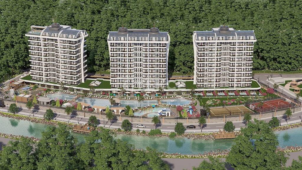 Das Projekt wurde auf einem 20.500 m² großen Grundstück erbaut und besteht aus 3 Blöcken. Der Komplex verfügt über Schwimmbäder im Innen- und Außenbereich, einen Aquapark-Pool, ein Kinderbecken, Grillplätze, Fitnessbereiche im Freien, Tischfußball, ein Amphitheater, einen Wintergarten, einen Whirlpool, Kinderspielplätze, einen Beachvolleyballplatz, einen Fußballplatz, einen Basketballplatz, einen Tennisplatz, Minigolf, Entspannungsbereiche, Spazierwege, einen Fahrradweg, eine Ladestation, einen botanischen Garten, eine Poolbar, Parkplätze, Riesenschach, Pavillons, eine Lobby-Rezeption, ein Kinderspielzimmer, ein Fitnesscenter, einen Kinoraum, Tischtennis, einen Massageraum, ein Türkisches Bad, eine Sauna, ein Dampfbad, eine Russische Sauna, einen Markt, Waschmöglichkeiten, einen Autovermietungsservice, einen Shuttleservice zum Strand und Reinigungsdienste.