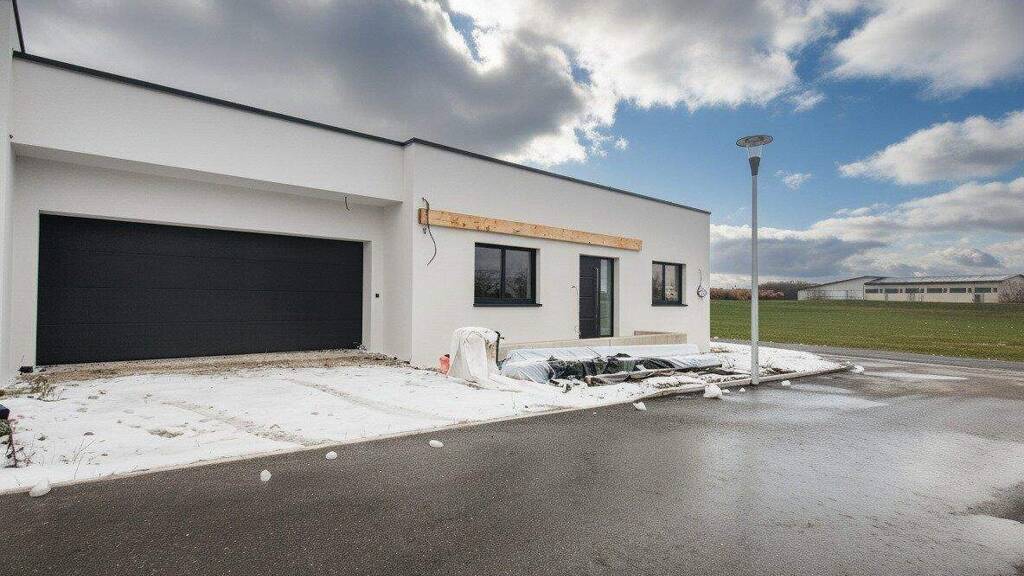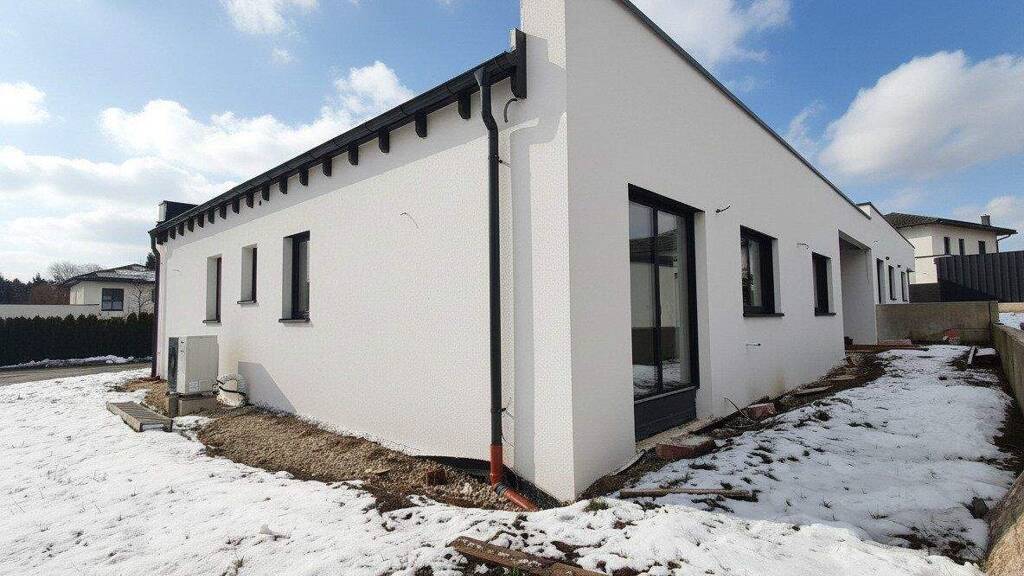 Es handelt sich um einen hochwertigen Neubau aus dem Jahr 2024/25 in Massivbauweise mit Flachdach. Die Beheizung erfolgt über eine energieeffiziente Luftwärmepumpe mittels Fußbodenheizung.