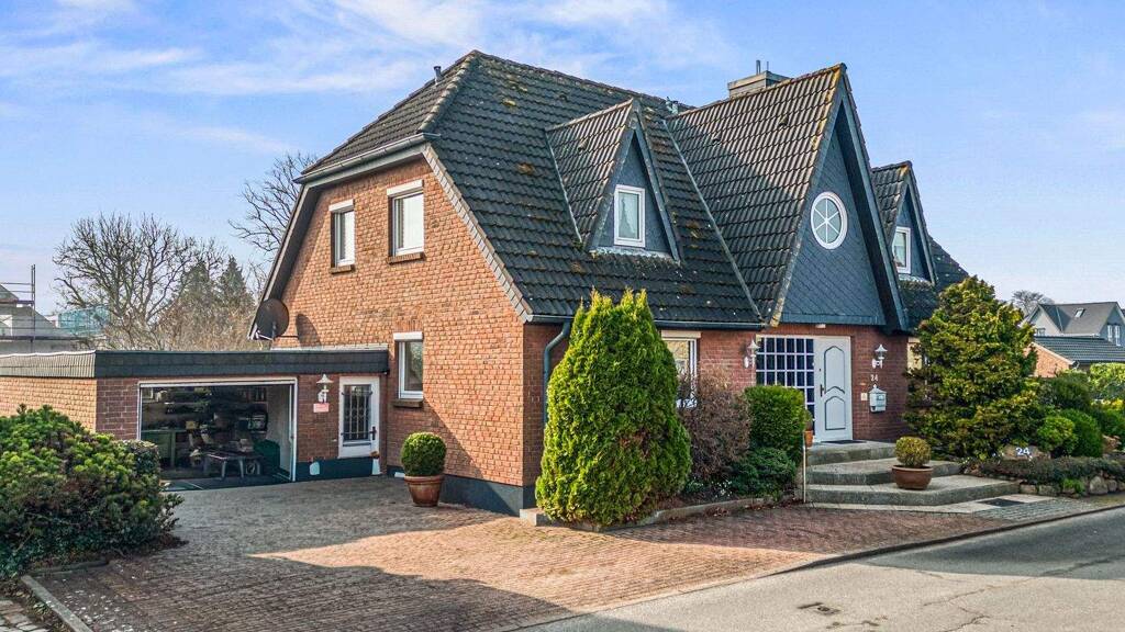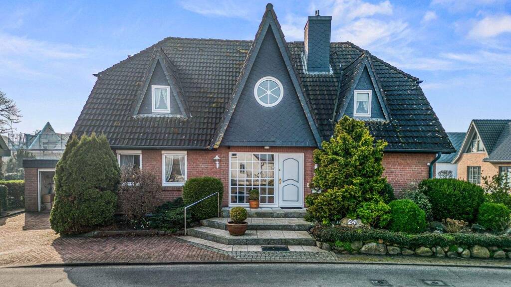 Dieses charmante Haus befindet sich in begehrter Lage in erster Reihe hinter dem Deich, in der Strandstraße. Die ansprechende Rotklinkerfassade mit drei charakteristischen Friesengiebeln zur Straßenseite verleiht dem Gebäude den besonderen, norddeutschen Charme. Das ansprechend angelegte Grundstück rundet das harmonische Gesamtbild ab.