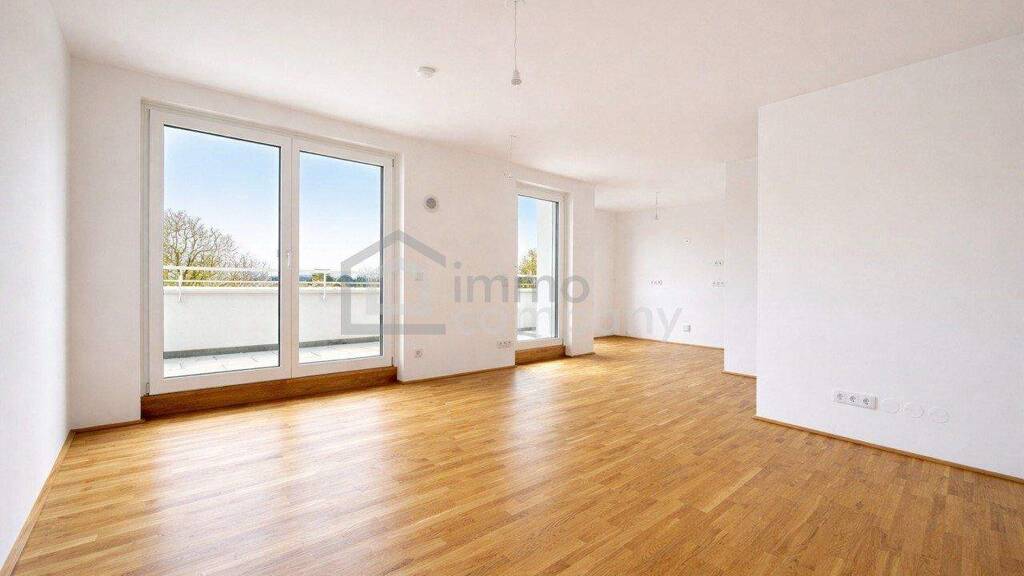 Die Wohnung verfügt über eine Wohnfläche von 52,16 m² und überzeugt durch eine durchdachte Raumaufteilung. Die großzügige Wohnküche bildet das Herzstück der Wohnung und bietet direkten Zugang zur Terrasse. Große Fensterflächen sorgen für eine angenehme natürliche Belichtung und unterstreichen den modernen Wohnkomfort. Ein zusätzlicher kleiner Balkon ergänzt das Außenangebot.
