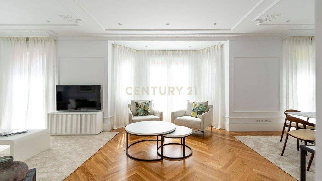 Die Wohnung wurde von einem renommierten Architekturbüro mit besten Qualitäten renoviert. Architektonische Elemente der damaligen Zeit wurden beibehalten. Zierleisten, Parkettböden, doppelt verglaste Kipp- und Drehfenster, klimatisierte Kanäle mit unabhängigen Reglern in jedem Raum, Hausautomation. Alle Schränke und Kommoden, vom Boden bis zur Decke, sind verkleidet und verfügen über LED-Licht, was die Stauraumkapazität optimal ausnutzt.
