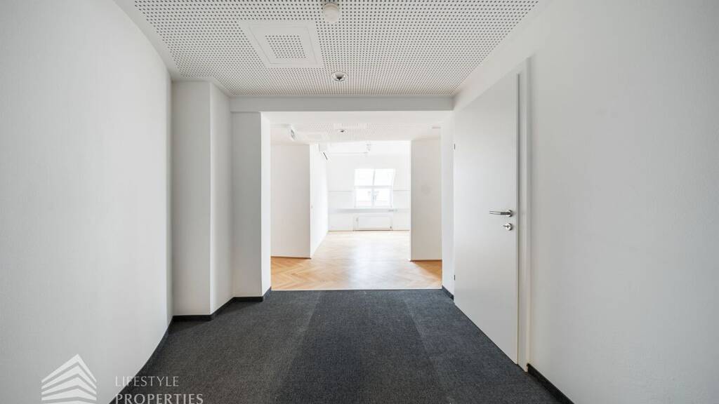 Das Büro verfügt über eine Nutzfläche von ca. 173 m² und befindet sich im 1. DG eines im Jahre 1897 erbauten Altbauhauses, welches sich in einem sanierten Zustand befindet. Beim Betreten des Büros befindet sich der ca. 4 m² große Vorraum mit einen ca. 25 m² großen Empfang. Rechts beim Eingang befinden sich die Toiletten für die Damen und Herren. Durch einen ca. 28 m² langen Gang gelangt man zu den einzelnen Büroräumen. Am Anfang des Ganges befindet sich ein Sozialraum mit einer Teeküche. Den Gang entlang befindet sich auf der rechten Seite ein Kopierraum und ein Badezimmer. Die Fläche des Heizraumes wird auf vier Einheiten aufgeteilt. Die gesamten Räume sind klimatisiert. Bei gewünschten Raumaufteilungen durch Glaswände und Glastüren kann sich die monatliche Bruttomiete bis zu 551,84.- Euro erhöhen. Die Infrastruktur dieser Immobilie ist hervorragend. In nur wenigen Gehminuten kommen Sie zum Stadtzentrum. Mit den öffentlichen Verkehrsmitteln erreichen sie die Büroeinheiten mit der U-Bahn Linie 1 und 4, Station Schwedenplatz. In unmittelbarer Nähe finden Sie Einkaufsmöglichkeiten sowie Gastronomiebetriebe.