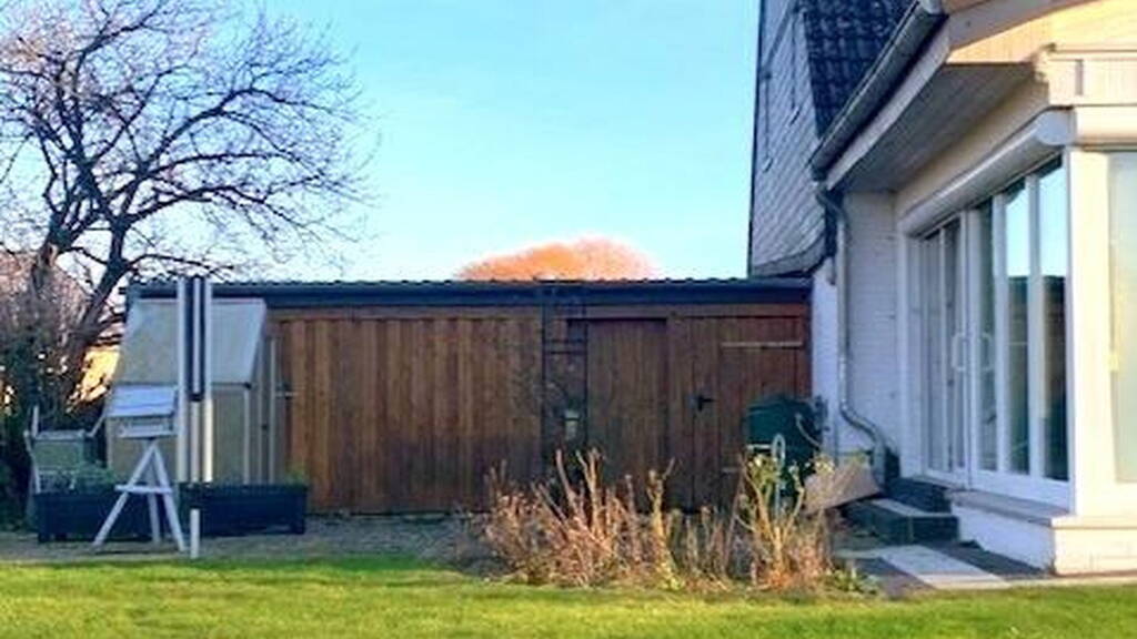 Neben dem Haus finden im soliden Doppel-Carport mit Holzlager-möglichkeiten zwei Pkw und Fahrräder Platz. An seiner Rückseite im Gartenbereich, der durch eine massive Tür auch vom Carport erreichbar ist, ist ein geräumiger Außenabstellraum angegliedert. Der schöne, eingewachsene Garten bietet reichlich Raum für eine individuelle kreative Gestaltung, was die Rosenlaube als charmanter Freisitz und der kleine Gartenteich bereits erkennen lassen. Mit nur einem direkten Nachbarn lebt man dank der angrenzenden Felder und Wiesen mitten im Grünen und kann in vollkommener Privatsphäre den Kindern beim Spielen zusehen oder einfach die Ruhe genießen. Die Hauptterrasse liegt blickgeschützt vor dem attraktiven Anbau. Über die Seitenterrasse mit einem kleinen Gewächshaus betritt man den Nutzgarten mit seinem schönen, alten Baumbestand.