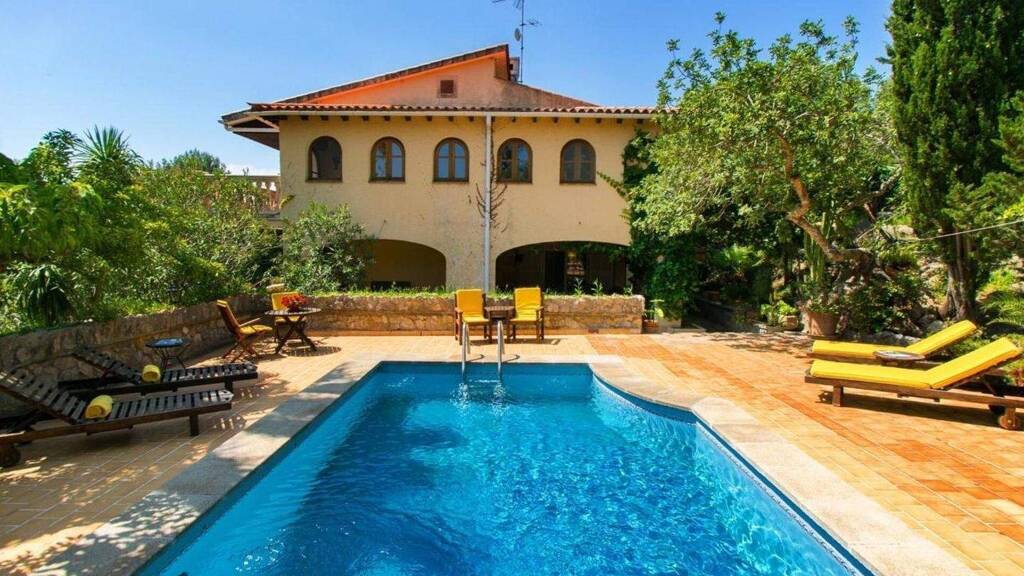 Dieses exklusive Anwesen befindet sich in Pollensa auf Mallorca. Das Haus liegt in einer ruhigen Gegend, ist aber dennoch nicht weit von allen wichtigen Dienstleistungen entfernt. Es ist ca. 300 qm groß und befindet sich auf einem 3800 qm großen Grundstück. Auf drei Etagen aufgeteilt befinden sich drei Schlafzimmer, drei Bäder, ein Wohn-/Essbereich und eine große Küche. Ein Fitnessbereich, in dem sich unter anderem ein Whirlpool befindet, ist eine Besonderheit des Hauses. Der Pool im Außenbereich und der wunderschön angelegte Garten laden zu vielen entspannten Stunden ein.