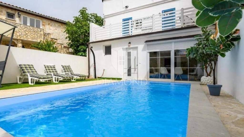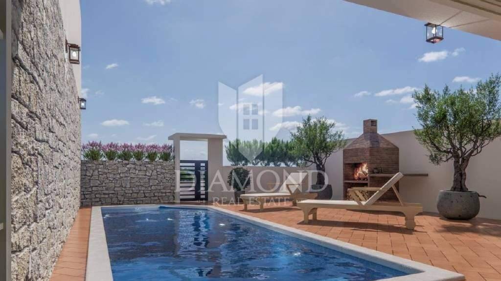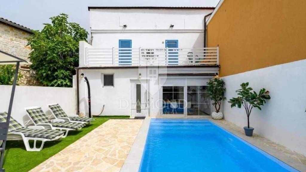 Dieses charmante autochthone istrische Haus liegt nur 3 km von Porec und den ersten Stränden entfernt. Seine Gesamtfläche beträgt 140 m2 und verteilt sich auf drei Etagen. Im Erdgeschoss des Hauses befinden sich ein Wohnzimmer, eine Küche, ein Esszimmer und ein Badezimmer, im ersten Stock befinden sich zwei Schlafzimmer, jedes mit einem eigenen gut ausgestatteten Badezimmer und Zugang zur Terrasse, und im zweiten Stock befinden sich zwei Schlafzimmer eine Galerie von 40 m2, die in zwei weitere Schlafzimmer unterteilt werden kann. Die Innentreppe wird durch ein 180*140 m großes Dachfenster mit Fernbedienung beleuchtet. Das Wohnzimmer führt direkt auf die Terrasse, wo sich der Swimmingpool befindet. Der Pool wird Salzwasser sein. Die Beheizung des gesamten Hauses und des Wassers erfolgt über eine Klimaanlage, und es besteht die Möglichkeit, einen Pellet- oder Holzofen zu installieren. Der Parkplatz befindet sich vor dem Tor. Alle Annehmlichkeiten des Lebens sind in wenigen Autominuten erreichbar.