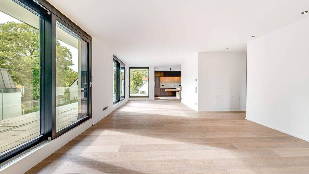 Ihnen einen atemberaubenden Panoramablick auf die grüne Umgebung und die Skyline Münchens bietet. Das Penthouse selbst besticht durch seine großzügigen, lichtdurchfluteten Räume, die nahtlos in die beeindruckende Dachterrasse übergehen. Das Design und die hochwertige Ausstattung setzen höchste Maßstäbe und bieten Ihnen ein luxuriöses Wohngefühl, das im Einklang mit der Natur steht.