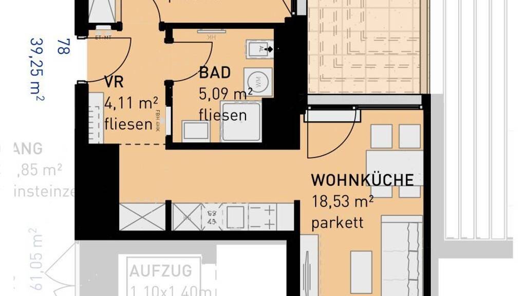 Stichworte Nutzfläche: 39,25 m², Gesamtfläche: 42,34 m², Anzahl Terrassen: 1, Balkon-Terrassen-Fläche: 12,36 m², Kellerfläche: 2,35 m², Bundesland: Wien, 5 Etagen, Wohnungsnr.: 78