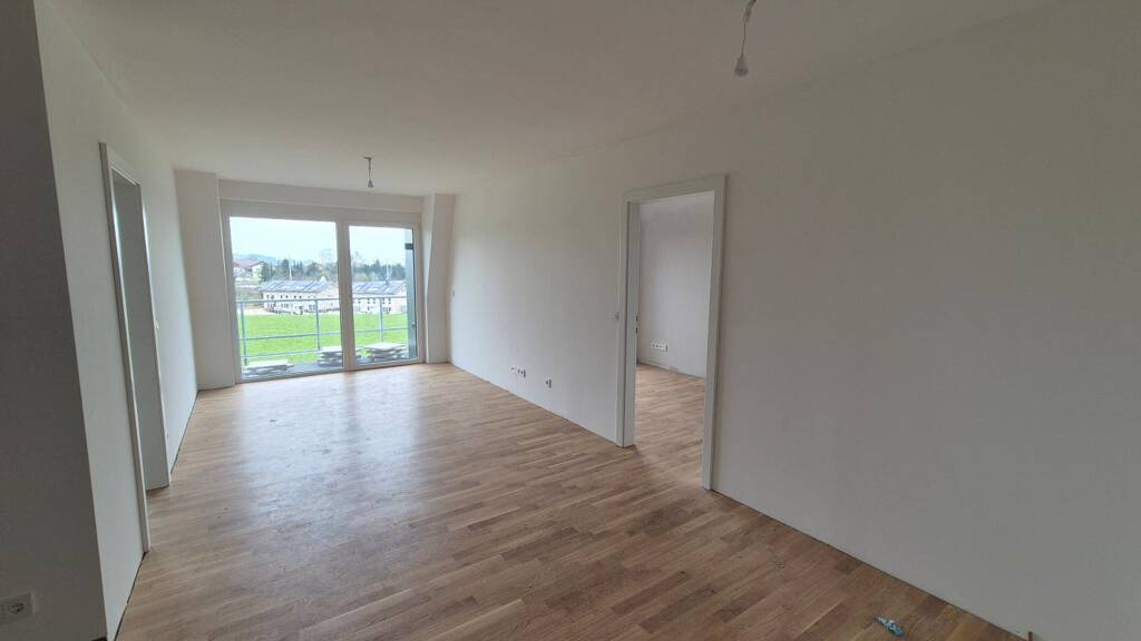 Vorraum, Badezimmer mit Dusche, Badewanne und Waschmaschinen Anschuss, Wohnraum mit Küche und Balkon, Schlafzimmer 1, Schlafzimmer 2 mit Balkon.