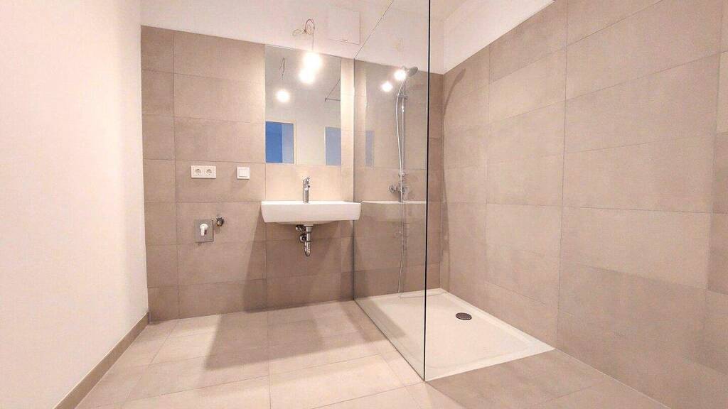 - Badezimmer mit Walk-in-Dusche (Waschmaschinenanschluss vorhanden)