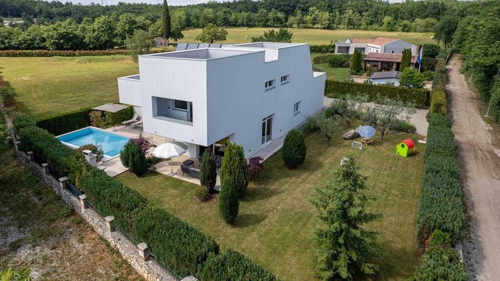 Diese außergewöhnliche Villa steht in einer kleinen istrischen Stadt unweit von Rovinj (25 km) auf einem Grundstück mit 1.178 m2.