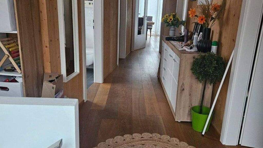 - ca. **80 m² Wohnfläche** - **3 Zimmer**: 2 Schlafzimmer & großzügiger Wohn-Essbereich - **Moderne Einbauküche** mit hochwertigen Geräten - **Bad mit Dusche & Badewanne** - **2 separate WCs** - **Waschmaschinenanschluss im Bad** - **Garderobe mit Abstellraum** - **2 überdachte Balkone** mit Berg- & Weitblick - **Kellerabteil** - **PKW-Stellplatz direkt beim Haus** - **Erdwärme-Heizung** ? niedrige Betriebskosten - Hochwertige **Holzwände & Holzdecken** für angenehmes Raumklima