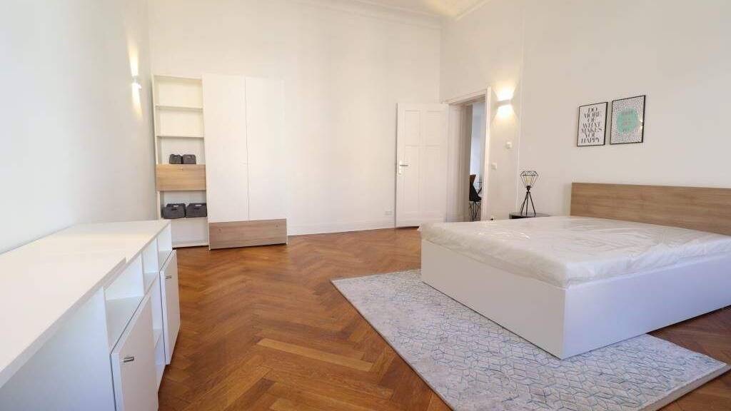 Allgemeines Es handelt sich um eine wunderschöne Altbau Wohnung mit 8 Zimmern und 4 Bädern, welche frisch saniert wurde. Alle Zimmer sind möbliert und einzeln abschließbar. Zur Ausstattung der Wohnung gehört eine moderne Einbauküche mit E-Geräten und integriertem Essbereich.