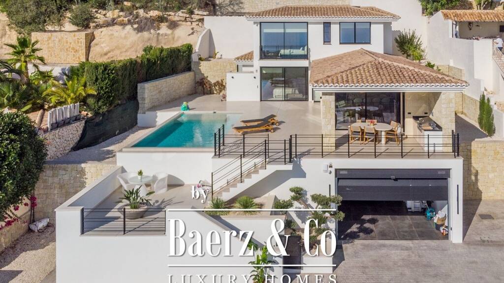 we are pleased to present this beautiful luxury villa with spectacular views, situated in a privileged location in benissa. the style of this villa is a perfect combination of beautiful mediterranean architecture and a sleek, modern finish. the typical roof tiles and natural stone walls are flawlessly combined with the large windows with thin profiles, large ceramic tiles and white, neatly plastered walls.
