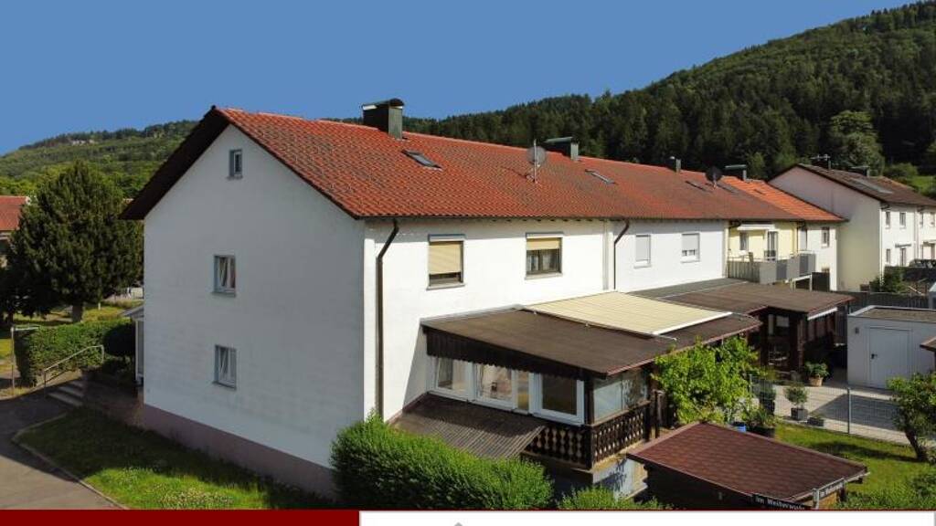 Großes und gemütliches Reiheneckhaus in Albstadt Ebingen im Wohngebiet des Riedbach. In ruhiger und sonniger Wohnlage befindet sich das Haus mit großer, überdachter Pergola, Garten und Garage.