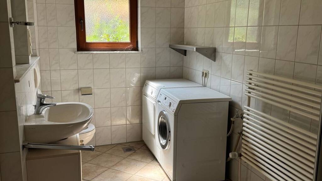 Im Obergeschoß befinden sich aktuell 4 Zimmer, Flur, ein Badezimmer mit Wanne und Dusche sowie eine Küche. Vom Flur gelangt man in den nicht ausgebauten Bodenraum.