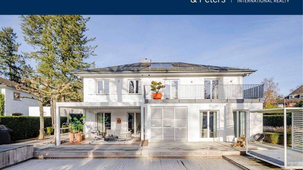 DAS OBJEKT: Inmitten exklusiver Nachbarschaft finden Sie diese einzigartige Villa aus dem Jahr 1954, die 2006 kernsaniert und erweitert wurde. Große Fensterflächen und geradlinige Proportionen verleihen dem Haus eine moderne Architektur und eine schnörkellose Anmut. Die Wohnflächen gehen fließend ineinander über und schaffen eine nahtlose Verbindung zur Terrasse und zum Garten.