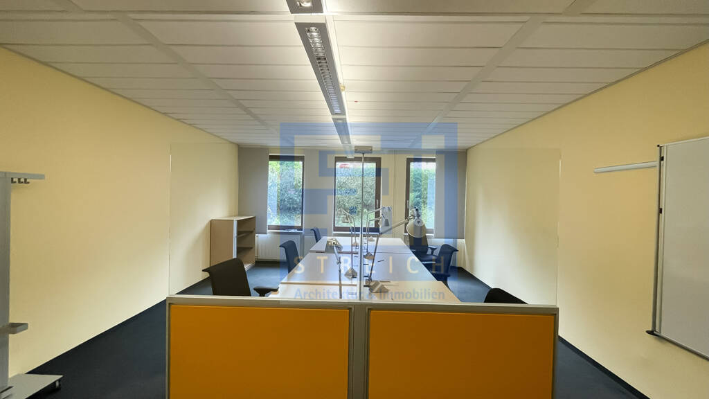 Die hier angebotene Bürofläche befindet sich im Gartengeschoss. Durch die abgesetzte Etage fällt der Blick aus den Fenstern direkt ins Grüne. Zuletzt wurden die Räume zum größten Teil für Unternehmensinterne Schulungen und Fortbildungen genutzt. Daher ist die Raumaufteilung ein Mix aus Einzelbüros und großen Besprechungs- und Vortragsräumen. Eine Anpassung der Raumaufteilung ist selbstverständlich möglich.