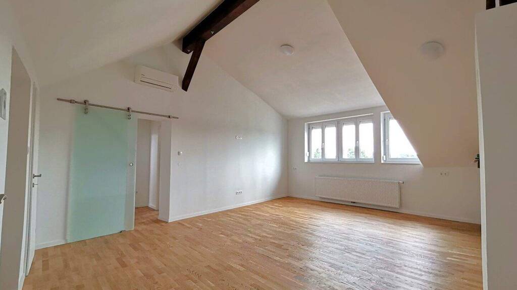 Obergeschoss: Vorraum, Küche, Abstellraum, etwa 32m² großer Wohnbereich, drei zentral begehbare Schlafzimmer, Badezimmer mit hochwertige Ausstattung, Badewanne, Dusche, Doppelwaschtisch, extra WC mit Handwaschbecken Alle Fenster sind doppelt verglast und straßenseitig mit Außen Jalousien ausgestattet. Die Beheizung und Warmwasseraufbereitung erfolgt mittels einer Brennwertgerät inkl. Bosch Raumthermostat inkl. Bosch Heizkörperthermostate (WLAN fähig). Klimaanlage in allen Wohn und Schlafräumen der Marke Panasonic (WLAN fähig). Ein zugehöriger KFZ-Stellplatz ist im Kaufpreis inkludiert und rundet dieses Angebot ab. Durch die Größe der Wohnung sind sie Mehrheitseigentümer dieser Liegenschaft!