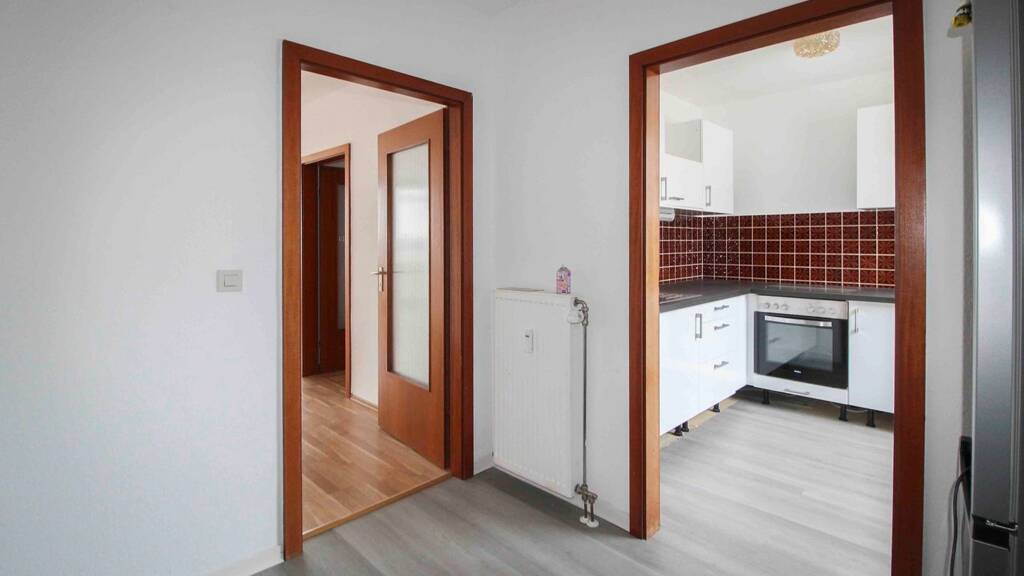 Ein Badezimmer sowie ein separates Gäste-WC sorgen für praktischen Komfort. Die vorhandene Einbauküche ist funktional ausgestattet. Die Wohnung bietet viel Potenzial zur individuellen Gestaltung und ermöglicht es dem zukünftigen Eigentümer, persönliche Wohnideen zu verwirklichen.