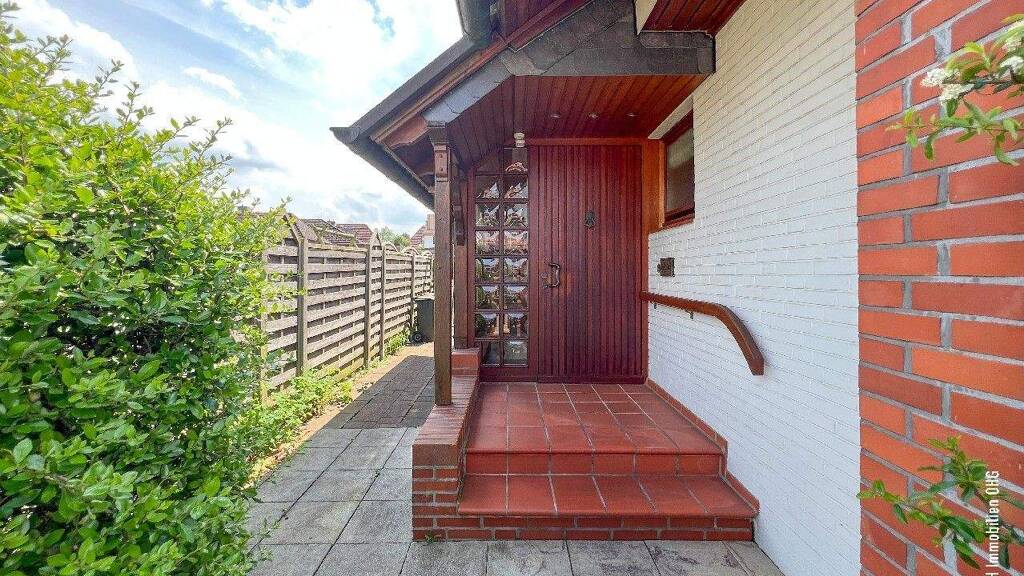 Über einen sehr hellen und praktischen Windfang gelangen Sie in den Flur, der als Dreh- und Angelpunkt des Hauses zu sehen ist und über einen praktischen Einbauschrank verfügt. Geradeaus führt Sie der Weg direkt zum Wohn- und Esszimmer mit großem Fenster und Zugang zur vorderen Terrasse. Hier finden neben dem gemütlichen Sofa auch ein großer Esstisch seinen Platz. Über einen kleinen Erker oder eine Schiebetür gelangen Sie in den Kochbereich. Von hier geht es durch eine weitere Terrassentür zu der zweiten, großen und überdachten Terrasse. Hier können Sie mit guter Sonnenausrichtung den hinteren Garten genießen und sind dank einer gewachsenen Hecke blick- und winddicht geschützt. Das Erdgeschoss verfügt zudem über ein Schlafzimmer, welches optional als Gäste- oder Arbeitszimmer genutzt werden kann. Ein WC sowie ein modernisiertes Duschbad runden dieses Geschoss ab. Die Sanitärräume verfügen jeweils über Fenster, die Tageslicht spenden und Lüftungsmöglichkeiten bieten.
