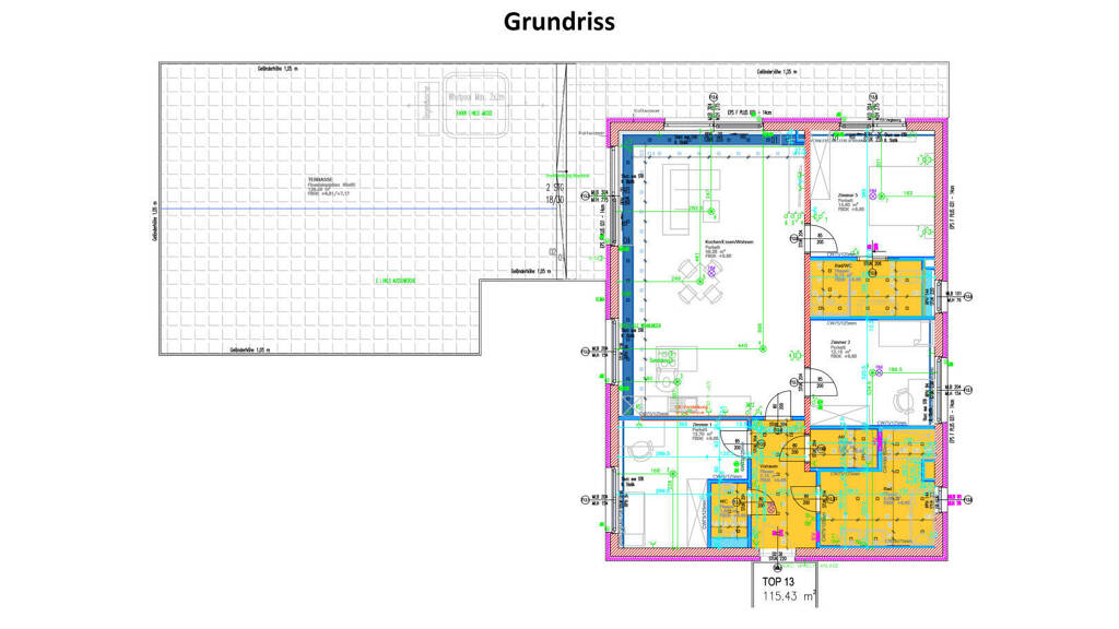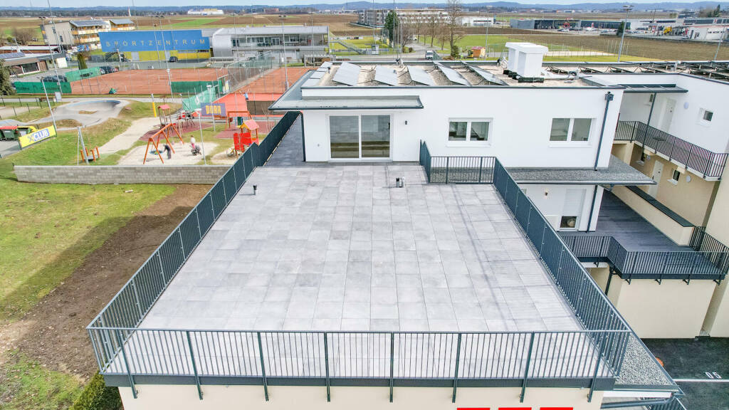 Das neu errichtete Penthouse präsentiert sich auf großzügigen 115 m² Wohnfläche und begeistert mit einer atemberaubenden Terrasse von 128 m². Hier bietet sich Ihnen die einzigartige Gelegenheit, Ihre ganz persönliche Oase der Ruhe und des Vergnügens zu gestalten. Die Terrasse ist mit Wasseranschlüssen versehen, ideal für die Pflege von Pflanzen oder die Installation eines eigenen privaten Whirlpools, der Ihnen unvergessliche Entspannungsmomente beschert.