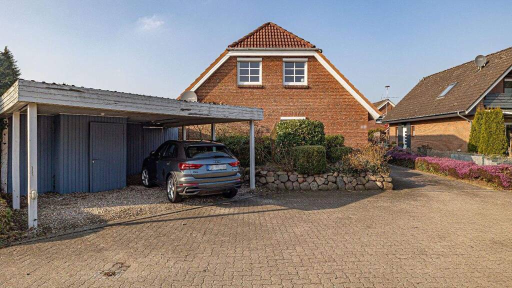 Im Außenbereich befinden sich zwei Carports und ein kleines Gartenhaus. Die Terrasse hat eine Süd-/Westausrichtung.