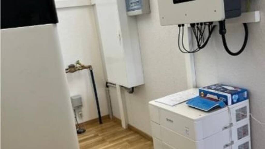 Am Neubau angrenzend befindet sich auf der Rückseite der Technikraum mit Wärmepumpe.