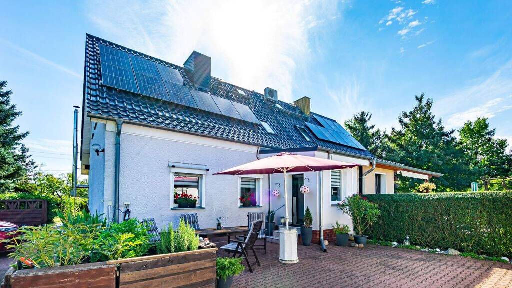 Moderne DHH in Altlandsberg: 5Z, 103m² Wfl, ausgebautes Gartenhaus, Pool, PV-Anlage, 1.200 m² Grst