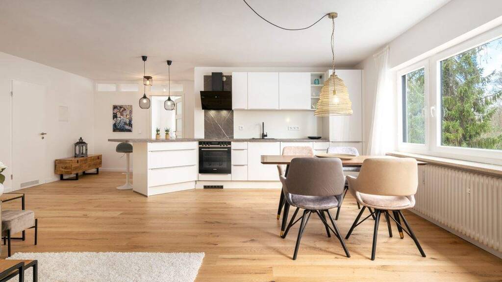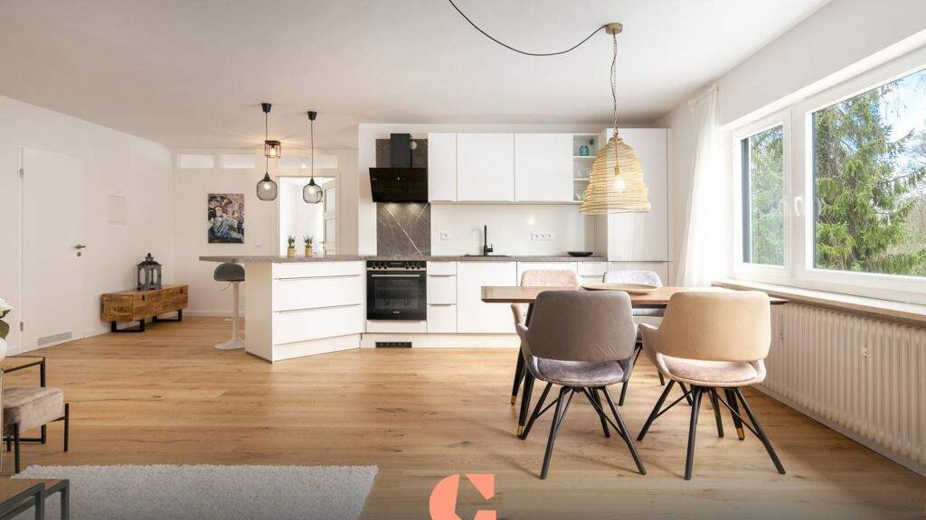 Diese Wohnung liegt im 1. Obergeschoss (2. Etage) eines gepflegten Mehrfamilienhauses aus dem Jahr 1976. Die sanierte Immobilie befindet sich in idyllischer Lage, nur wenige Gehminuten vom Forstenrieder Park entfernt. Luxuriös und stilvoll präsentiert sich hier ein besonderes Schmuckstück. Eine offene Raumgestaltung, eine hochmoderne Ausstattung und ein Balkon in Ost-Ausrichtung mit Blick ins Grüne prägen das Objekt.