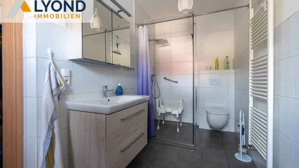 Im Erdgeschoss befindet sich der einladende Wohnbereich und im Obergeschoss befindet sich die Küche mit direkten Zugang zum Balkon und zur Terrasse. Das im Jahr 2022 hochwertig sanierte Duschbad präsentiert sich in zeitgemäßem Design und unterstreicht den gepflegten Gesamteindruck des Hauses.