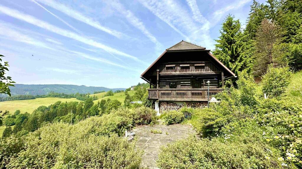 Idyllische Almhütte mit eigener Sauna auf 1.200 Meter Seehöhe mit atemberaubendem Weitblick auf die Koralm in wunderschöner Lage nahe dem Kärntner Klo