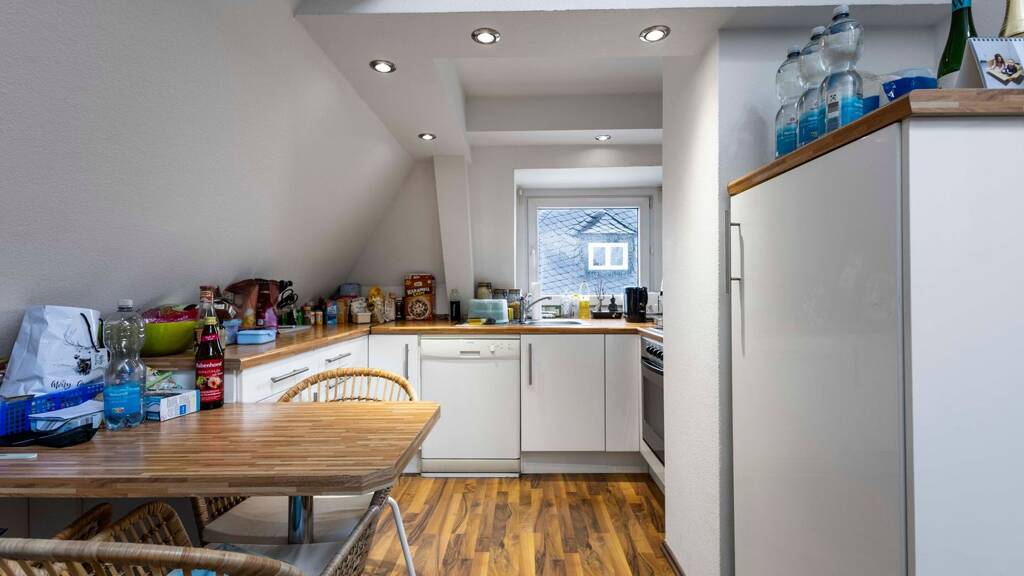 Kurzüberblick - Bezugsdatum: ab sofort - Wohnfläche: ca. 60 m² - Zimmeranzahl: 2 - Bad: Dusche, Fenster - Balkon/Terrasse: nein - Einbauküche: ja - Bodenbelag: Laminat - Energieausweis: in Bearbeitung - Heizung: Etagenheizung - Energieträger: Gas - Stockwerk: Dachgeschoss - Aufzug: nein - Stellplatz: öffentliche Stellplätze - Mietanpassung: Indexmiete