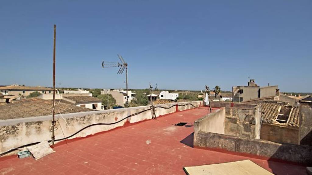 Im Herzen der Ortschaft Ses Salines im Südosten von Mallorca steht dieses Stadthaus nur wenige Meter entfernt von dem Marktplatz. Das Haus mit Ursprung im Jahr 1870 hat in Erdgeschoß und ersten Obergeschoß eine bebaute Fläche von insgesamt 138 m². Die ca. 80 m² große Dachterrasse lädt zum Sonnenbaden ein. Von hier schweift der Blick vom Kirchturm über den ganzen Ort, die umliegende Landschaft bis hin zum Kloster San Salvador in der Ferne. Dieses Stadthaus hat einen kleinen Balkon im ersten OG, aber keinen Patio! Das Haus ist an die öffentliche Strom- und Wasserversorgung angeschlossen und im Besitz der Bewohnbarkeitsbescheinigung (muss erneuert werden). Das Haus ist renovierungsbedürftig. Auf Grund seiner Lage kann dieses Haus nicht nur zu einer pflegeleichten Ferienoase verwandelt werden, sondern ist auch geeignet als Büro, Praxis oder Ladengeschäft.