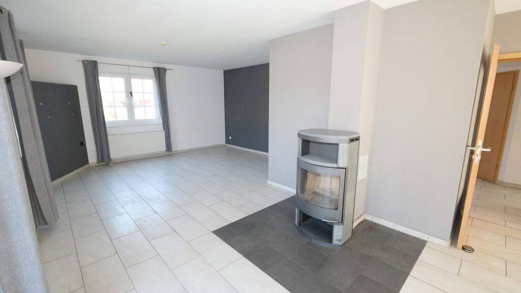 Sehr gute Ausstattung: Sprossenfenster und Außenrollos, Kaminofen, moderne Einbauküche, großformatige, helle Fliesen, Designböden, Buchenholztreppe, Glasfaseranschluß.
