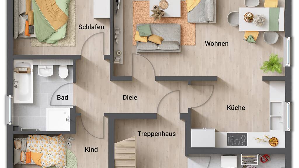 . Schlüsselfertig: Ihr Haus wird Ihnen, am Ende der Bauzeit, schlüsselfertig übergeben. Sie richten sich ganz nach Ihrem Geschmack ein.