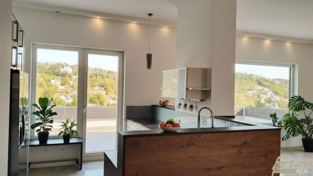 * Eigener Aufzug: Genießen Sie die Privatsphäre und den Komfort eines eigenen Aufzugs, der Sie direkt in Ihre Wohnung bringt. * Private Garage: Ihre neue Wohnung verfügt über eine eigene Garage, die Ihnen den direkten Zugang zum Eingang ermöglicht. * überdachter Stellplatz: zusätzlicher PKW Abstellplatz direkt vor dem Eingang (Carport) * Hallenbad und Sauna: Entspannen Sie sich nach einem langen Tag in der hauseigenen Wellness-Oase mit Hallenbad und Sauna. * Gemeinschaftsgarten: Nutzen Sie den wunderschönen Garten der Anlage, um sich zu entspannen oder gesellige Stunden im Freien zu verbringen. * Dachterrasse: Die Wohnung bietet eine großzügige Dachterrasse, die einen atemberaubenden Ausblick auf die Umgebung gewähren. Hier können Sie entspannen und die Aussicht genießen. Die Dachterrasse verfügt knapp über 180m² Grundfläche, sowie die anderen Balkone von ca.30m² bis hin zum größten mit ca.147m² die in jede Himmelsrichtung ausgerichtet sind. Direkter Zugang von den Zimmern * Privatsphäre: Dank der durchdachten Bauweise haben Sie keine Einblicke von Nachbarn, was Ihnen ein Höchstmaß an Privatsphäre garantiert. * Hochwertige Ausstattung: Genießen Sie den eleganten, geölten und verklebten Eichenboden sowie die exquisite Küche, die mit hochwertigen Geräten ausgestattet ist. Luxus Ausstattungen * Naturnähe: Der angrenzende Wald ist perfekt für Naturliebhaber und lädt zu Spaziergängen und Erkundungstouren ein * Großer Party-Keller: Feiern Sie unvergessliche Abende in Ihrem eigenen großen Party-Keller, der genügend Platz für Ihre Gäste bietet. * Viel Stauraum: Diese Wohnung verfügt über ausreichend Stauraum, um all Ihre persönlichen Gegenstände stilvoll unterzubringen.
