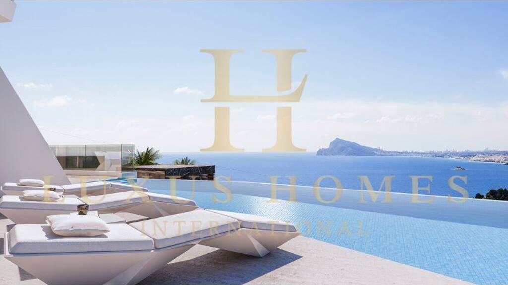 Hochwertige Luxus-Doppelhaushälfte mit privatem Außen- und Innenpool, großer Terrasse und einem fantastischen Panoramablick aufs Meer