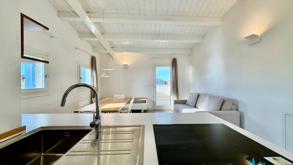In privilegierter Lage, direkt im historischen Zentrum von Caorle, erhebt sich dieses einzigartige Penthouse, das 2018 durch eine umfassende Gesamtrenovierung des Gebäudes zu einer exklusiven Wohnperle verwandelt wurde. Auf zwei Ebenen (2. und 3. Obergeschoss) vereint diese Residenz architektonische Eleganz mit modernstem Wohn-komfort und bietet ein unvergleichliches Panorama: der Blick schweift über die Piazza San Pio X, den historischen Dom mit seinem markanten Turm und die unendliche Weite des Meeres. Die rund 106 m Wohnfläche präsentieren sich in lichtdurchfluteter Offenheit. Im Obergeschoss dominiert der großzügige Wohn- und Essbereich mit edler offener Küche, geprägt von hellen Holzbalkendecken, großflächigen Fenstern und einem zeitlos-modernen Interieur. Von hier führt der Zugang direkt auf die spektakuläre Dachterrasse, die mit ihren 31 m Außenfläche als erweiterter Lebensraum unter freiem Himmel begeistert - perfekt für elegante Empfänge, stilvolle Abendessen oder entspannte Stunden bei Sonnenuntergang. Zwei Schlafzimmer, beide mit en-suite Bädern, sowie ein weiterer Abstellraum mit Waschküche unterstreichen die Alltagstauglichkeit, ohne den exklusiven Charakter zu schmälern. Die gesamte Wohnung ist mit moderner Klimatisierung ausgestattet und garantiert höchsten Komfort in allen Jahreszeiten. Ergänzt wird dieses Angebot durch die Möglichkeit, einen Garagenstellplatz in der nahen Umgebung für 50.000 € zu erwerben - eine wertvolle Option inmitten der Altstadt. Ein Penthouse von außergewöhnlicher Seltenheit, das Lage, Exklusivität und Werthaltigkeit in vollendeter Form vereint.