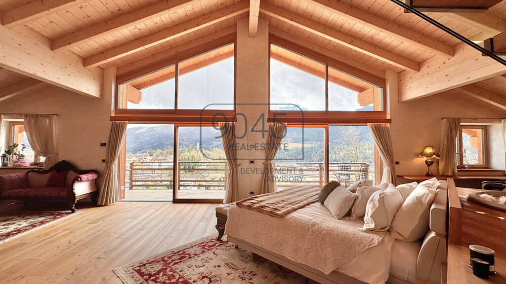 Der Schlafbereich umfasst zwei elegante Master-Schlafzimmer mit jeweils eigenem Bad und atemberaubendem Ausblick sowie einen praktischen Hauswirtschaftsraum. Das absolute Highlight der Immobilie erwartet Sie im Obergeschoss: eine spektakuläre Mastersuite über zwei Ebenen mit Kamin, sichtbaren Holzbalken, Kochnische, zwei Arbeitsbereichen, zwei begehbaren Garderoben, zwei Bädern mit durchgehender Glasdusche und einem verglasten Galeriegeschoss - ideal als privater Lese- oder Rückzugsbereich. Diese Suite kann als exklusiver Gästebereich oder als abgeschlossene Wohnung genutzt werden - perfekt für Privatsphäre und längere Aufenthalte.