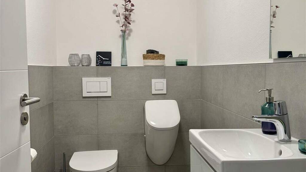 . 3 Zimmer, offene Küche, Badezimmer, Gäste-WC, Abstellraum und Flur