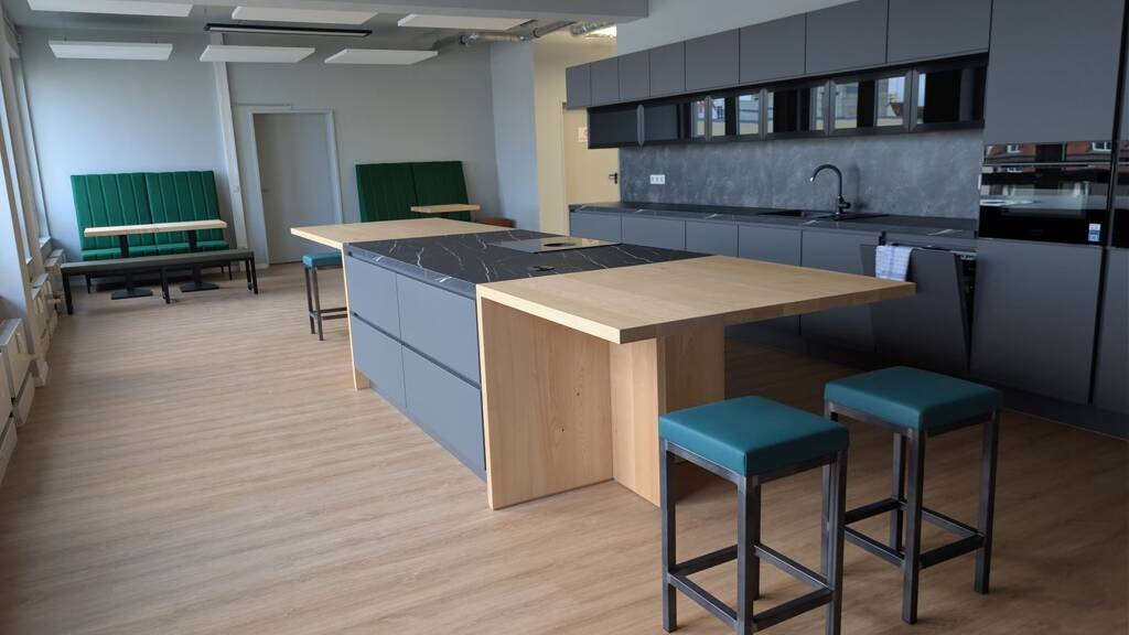 Die Bürofläche wurde von Grund auf renoviert und als modernes Großraumbüro konzipiert. Dabei wurde besonderer Wert auf eine offene und inspirierende Arbeitsatmosphäre gelegt. Ergänzend dazu wurde ein stilvoll gestalteter Bereich geschaffen, der einen großzügigen Casinobereich umfasst. Dieser dient als Rückzugsort für Pausen und informellen Austausch und trägt so zu einem zeitgemäßen und motivierenden Arbeitsumfeld bei. Sicherlich ist dieser Bereich auch dafür gedacht, um z.B. Firmenevents stattfinden zu lassen.