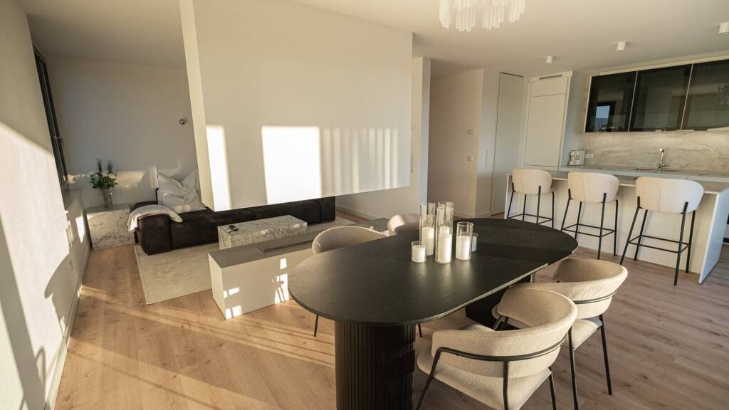 Beim Betreten der Wohnung werden Sie sofort von der hochwertigen Ausstattung beeindruckt sein. Die Fußböden sind mit edlen Fliesen und Parkett ausgelegt, was der Wohnung ein elegantes und zeitgemäßes Ambiente verleiht. Die moderne Einbauküche ist perfekt für alle, die gerne kochen, und bietet viel Platz und Stauraum für all Ihre Küchenutensilien. Die gesamte Möblierung der Wohnung kann um € 50.000,00 übernommen werden.