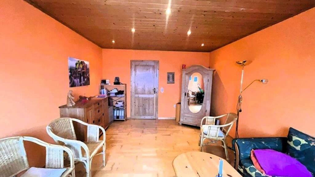 Das Herzstück ist das großzügige Wohnzimmer, in dem ein Schwedenofen für wohlige Wärme und ein besonderes Wohngefühl sorgt. Ergänzt wird das Raumangebot durch ein helles Schlafzimmer, eine praktische Küche sowie ein Badezimmer mit Dusche und WC. Ein freundlicher Flur verbindet alle Räume harmonisch miteinander und rundet das Wohnkonzept ab.