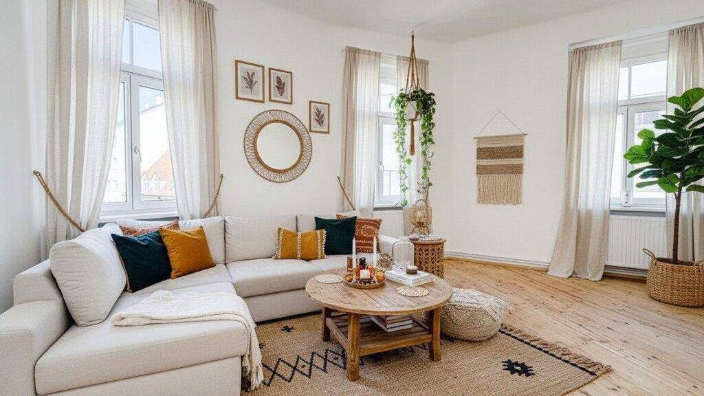 Große Fenster sorgen für lichtdurchflutete Räume und schaffen eine warme, einladende Atmosphäre.