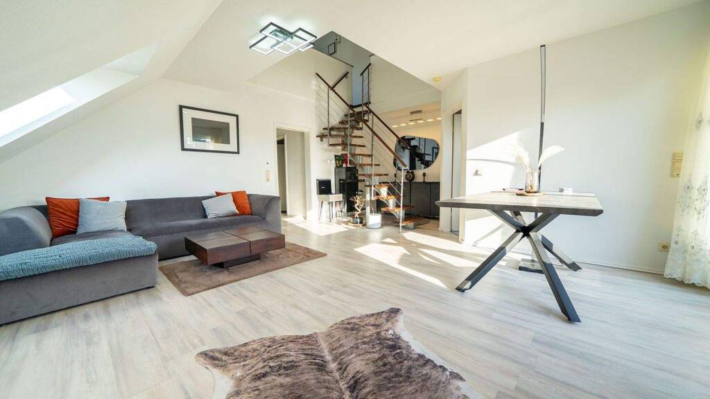 Die angebotene Maisonettewohnung befindet sich im 2. Obergeschoss sowie im Dachgeschoss eines gepflegten 6-Familienhauses aus dem Baujahr 1993. Die Wohnfläche beträgt ca. 79 m² und verteilt sich aktuell auf 2 Zimmer über zwei Ebenen. Im Dachgeschoss besteht die Möglichkeit, durch eine bauliche Anpassung einen dritten, vollständig abgetrennten Raum zu schaffen, sodass die Wohnung perspektivisch als 3-Zimmer-Wohnung genutzt werden kann.