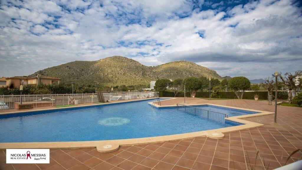 Exclusivo piso en planta baja en Puerto de Alcudia: confort, estilo y ubicación privilegiada.Precio 449.900.Esta inmaculada planta baja se encuentra en la codiciada ubicación de Puerto de Alcudia, a sólo 700 metros de la playa y con acceso a todos los servicios necesarios. Un retiro tranquilo en un cuidado complejo residencial caracterizado por sus cuidados jardines y zonas comunes, que ofrecen un entorno armonioso y atractivo. El complejo no tiene barreras y dispone de una rampa para personas con movilidad reducida..Distribución estudiada y diseño elegante.Nada más entrar en este piso, se nota la atención al detalle con la que se ha cuidado desde su construcción. La entrada conduce a través de una amplia puerta a una acogedora zona de recepción, ideal para estanterías y armarios zapateros..El luminoso salón-comedor, un lugar perfecto para socializar y relajarse, se abre directamente a una gran terraza cubierta. Esta zona exterior es ideal para colocar muebles de jardín y se convierte en una extensión natural del salón. Desde aquí hay acceso directo a la piscina comunitaria, los cuidados jardines y el aparcamiento..Cocina totalmente equipada y lavaderos funcionales.La moderna cocina está equipada con electrodomésticos de alta calidad y combina funcionalidad con un diseño elegante. Un lavadero independiente ofrece comodidad adicional y prácticas opciones de uso..Dormitorios amplios y acogedores.El piso cuenta con tres amplios dormitorios dobles, todos ellos equipados con armarios empotrados para ofrecer un espacio de almacenamiento óptimo. El dormitorio principal impresiona por su amplitud e intimidad, así como por su elegante cuarto de baño en suite. Los tres cuartos de baño completamente equipados incluyen dos con ducha y uno con bañera y ofrecen el máximo confort..Inmejorable relación calidad-precio.Esta planta baja es una auténtica joya que combina ubicación, calidad y comodidad a un precio excepcional. Aproveche esta oportunidad de vivir en un entorno exclusivo que combina la proximidad al mar con la comodidad de vivir en una propiedad perfectamente cuidada..Póngase en contacto con nosotros hoy mismo.Para más información o para concertar una cita de visita, no dude en ponerse en contacto con nosotros. Descubra su nuevo hogar en Puerto de Alcudia y déjese inspirar por esta propiedad excepcional..Características básicas.Superficie total 128 m², superficie habitable 120 m² 3 dormitorios 3 baños Terraza y balcón Plaza de aparcamiento incluida en el precio Estado de conservación Armarios empotrados Año de construcción 2001.Piso en planta baja con zona exterior Con ascensor Características.Aire acondicionado Piscina comunitaria Zonas verdes
