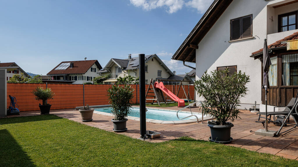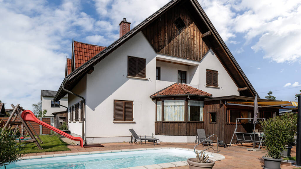 . Großzügiges Grundstück mit ca. 814?m² Fläche - ideal für Garten, Spiel & Erholung . Ca. 135?m² Wohnfläche (zzgl. ausbaufähigem Dachboden und Nebenräumen) . Wunderschöner Swimmingpool - Ihre private Ruheoase im eigenen Garten . Durchdachte Raumaufteilung - perfekt für Familien . Gästezimmer mit eigenem Bad im Erdgeschoss . Dachboden vorbereitet für weiteren Ausbau (z.?B. Elternbereich oder Spielzimmer)